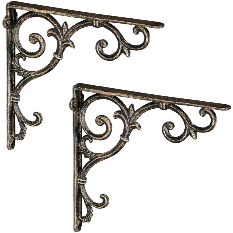 Sei un amante degli elementi di arredo che non solo sono pratici ma allo stesso tempo danno un tocco unico alla casa? Allora questo set di staffe per mensole dallo stile rustico è proprio quello che fa per te. A rendere ulteriormente stabili i reggimensola i puntelli che possono essere fissati sia sul lato corto che su quello lungo. Il punto forte dei supporti da mensola risulta essere l'asta centrale con la sensazionale forma a catena dall'aspetto vintage antico. Set di 4x staffe per mensole in dettaglio - Dimensioni H x L x P: 24,5 x 4 x 24,5 cm ca. - Peso di ogni staffa: 600 g ca. - Carico massimo per 2 staffe: 15 kg ca. - Materiale: ghisa - Colore: bronzo Set di staffe per mensole decorative - Per fissare le mensole liberamente sulla parete - Aspetto rustico dallo stile antico ideale per decorare la propria casa - Reggimensole con ornamenti in stile barocco - Fori per la mensole e la parete - Design vintage per creare un ambiente rustico Contenuto della spedizione - 4x