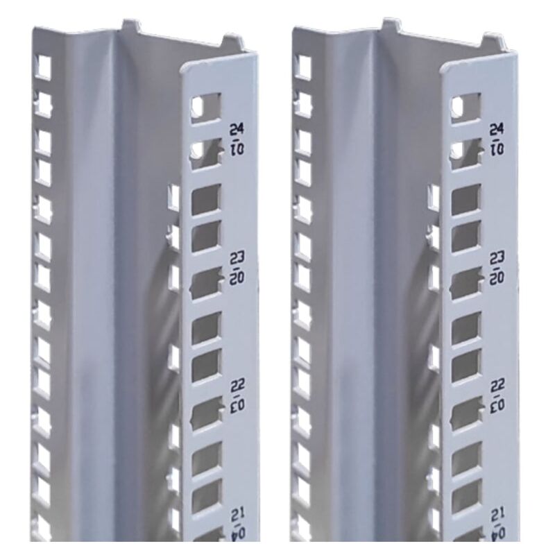 · Coppia di staffe montanti supplementari per rack 19 · Struttura lamiera di acciaio spessore 1.8 mm · Indicate solo per armadi 20 Unità · Compatibili con armadi I-CASE EP-2060BKT e I-CASE EP-2060GT · Fissaggio viti e in gabbia M6x14 mm forniti · Finitura polvere epossidica · Conta unità stampate sul fronte in ordine dal basso verso l'alto · Portata: 1000 kg · Colore silver · RAL 9022