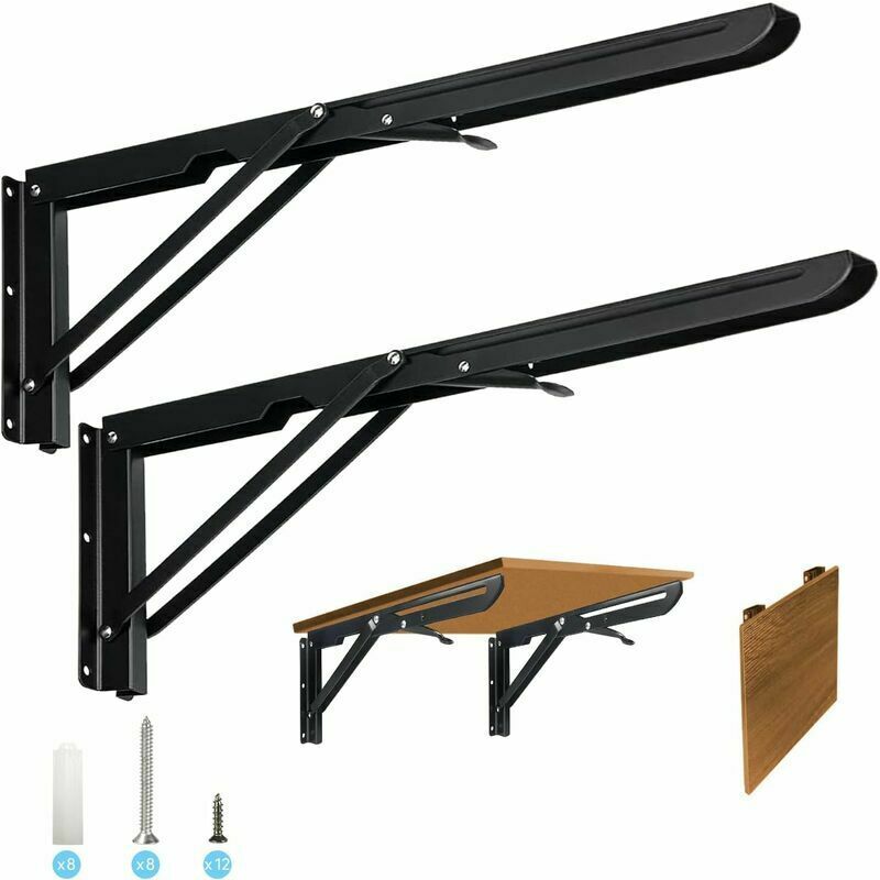 Salvaspazio - La staffa pieghevole richiede solo una superficie di montaggio e occupa pochissimo spazio. È possibile utilizzare queste staffe per estendere il banco da lavoro di garage, lavanderia, cucina, garage, barca, reception, cortile, camper, griglia, roulotte, camera da letto, balcone, bagno, ecc. Ripiegarlo quando non in uso consente di risparmiare spazio. Robusto e durevole - Realizzato in acciaio laminato a freddo ad alta resistenza e non facile da arrugginire. Tutela della salute e dell'ambiente. È facile da pulire. Bella superficie liscia senza ferire le mani. Il processo superficiale può prevenire graffi quotidiani e mantenerlo lucido come nuovo. Il design di blocco del pulsante a molla rende il supporto da parete pieghevole più affidabile quando rimane bloccato. Facile da installare: anche se non sei bravo nel fai-da-te, è facile da installare. Contiene le viti di montaggio corrispondenti. Ci sono 2 fori per il montaggio delle viti sul braccio corto, 3 fori per le viti