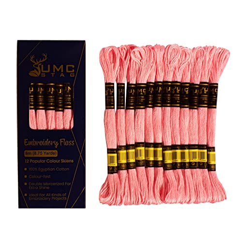 UMC STAG 12 pezzi rosa chiaro 50/957 geranio Premium filo da ricamo | 100% cotone egiziano matassine di alta qualità | filo da ricamo a punto croce | cotone intrecciato certificato Oeko TEX