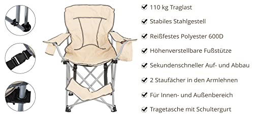 Stagecaptain CSF-600 Nick Sedia da campeggio con poggiapiedi 2x Set - Pieghevole - Scomparto termoisolante per le bevande - Portabibite - Materiale impermeabile - Borsa da trasporto inclusa - Sabbia