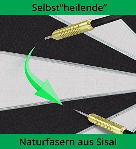 MATERIALE DA TORNEO SISAL - Il board da torneo è realizzato in fibra naturale sisal. Il fatto che le setole si riallineano sempre dopo la rimozione della freccetta fa sì che le punte di metallo delle freccette si attacchino ugualmente bene ogni volta!