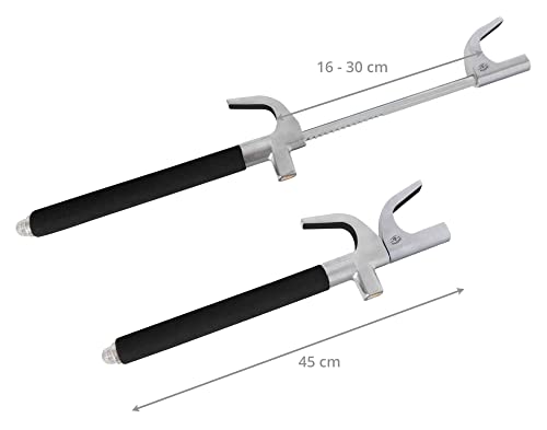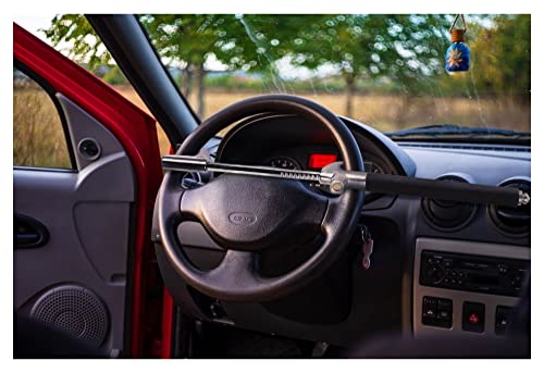 COSTRUZIONE SOLIDA- Il bloccasterzo è fatto di una lega di acciaio/alluminio molto resistente, che praticamente non può essere distrutta. L'antifurto si adatta a tutti i volanti standard con un diametro interno di circa 16 - 30 cm.