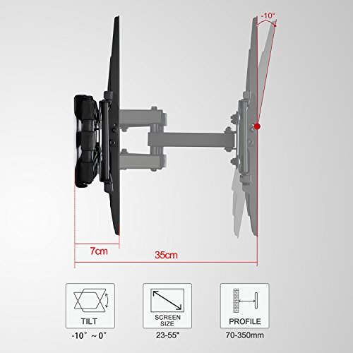 ✔ Flessibile: Girevole 180°/ Inclinazione -10°~ 0°/ Distanza dalla parete 70mm -350mm, Design ergonomico per una migliore angolo di visione.Fornire un angolo di visualizzazione confortevole quando si guarda la TV sul letto o sul divano.