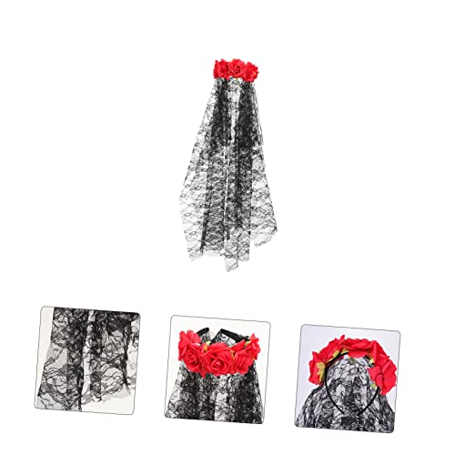 STAHAD Fascia Rosa Velo Gotico Per Fascia Fiore Di Halloween Fascia in Velo Nero Copricapo Di Fiori Fascia Cosplay Di Halloween Anello Per Sposa Europeo e Americano Tessuto
