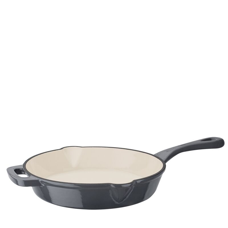 GSW - Padella Grey Shadow: un must have per la tua cucina La padella Grey Shadow con contromanico e due beccucci, smaltata grigia e smaltata bianca all'interno, è ideale per l'uso a vita. Realizzata in ghisa pesante, la padella offre una distribuzione uniforme del calore e una lunga conservazione del calore su tutti i piani cottura, compresi quelli a induzione. Universale e di alta qualità. La struttura in ghisa pesante è a risparmio energetico e ideale per servire sulla tavola. Leggero e facile da pulire, lavabile in lavastoviglie e utilizzabile in forno fino a 240 °C. Pieno di gusto Prova piatti di verdure selvatiche, carne soffice, involtini abbondanti o finezza ragout, un succoso arrosto o stufato salato. Basta friggere sul fornello e cuocere in forno. Dettagli tecnici: Esterno grigio smaltato, interno smaltato bianco. Per uso a vita Con 2 beccucci e contromaniglia. Contatto sempre ottimale con la superficie riscaldante. Adatta a tutti i piani cottura, anche quelli a induzione.