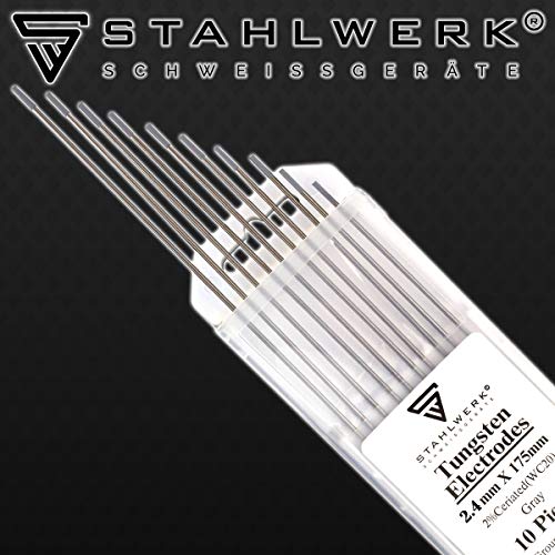 10 x STAHLWERK TIG Elettrodi per saldatura al tungsteno 2,4 x 175 mm WC20 Senza torio - aghi TIG universali per acciaio, acciaio inox, alluminio, alluminio, rame, grigio, 10 pz.