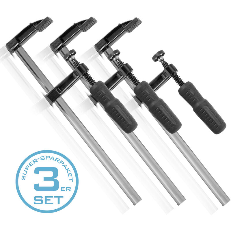STAHLWERK morsetto a vite morsetto F set di 3 DIN 5117 - 50 x 250 mm albero nichelato guida profilata impugnatura completamente gommata Morsetto a vite STAHLWERK Morsetto F 50 x 250 mm per il fissaggio e il serraggio preciso di pezzi in metallo, legno, plastica e molto altro. Realizzato secondo la norma DIN 5117 con albero nichelato, guida profilata, robusti tappi di protezione in plastica, impugnatura completamente gommata e antiscivolo per la massima stabilità. Struttura robusta e resistente con lunga durata. Caratteristiche I morsetti a vite STAHLWERK, potenti e di alta qualità, sono ideali per fissare e bloccare pezzi in metallo, legno, plastica e molto altro. Perfettamente adatti a carpentieri, metalmeccanici, saldatori, falegnami e amanti del fai-da-te. La lavorazione di alta qualità dei componenti garantisce la massima stabilità e una presa sicura. I morsetti a vite sono facili da usare grazie alla loro filettatura scorrevole e garantiscono un lavoro confortevole, consentendo