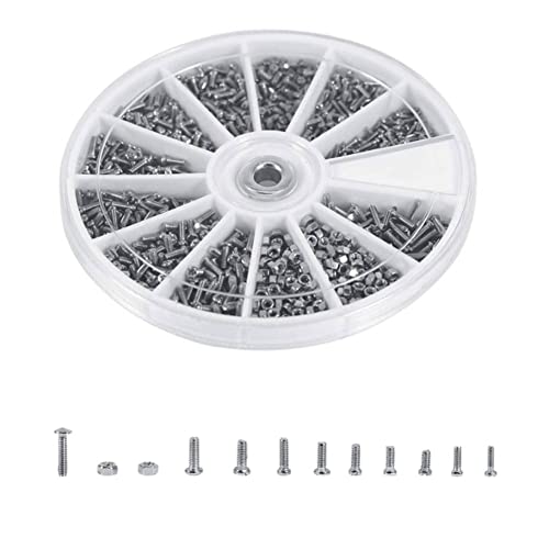 A2 Stainless Bolts And Nuts - 12 tipi di viti Set di dadi 600 pezzi Kit di mini dadi bulloni Assortimento M1 M1.2 M1.4 M1.6 per orologi Glassess
