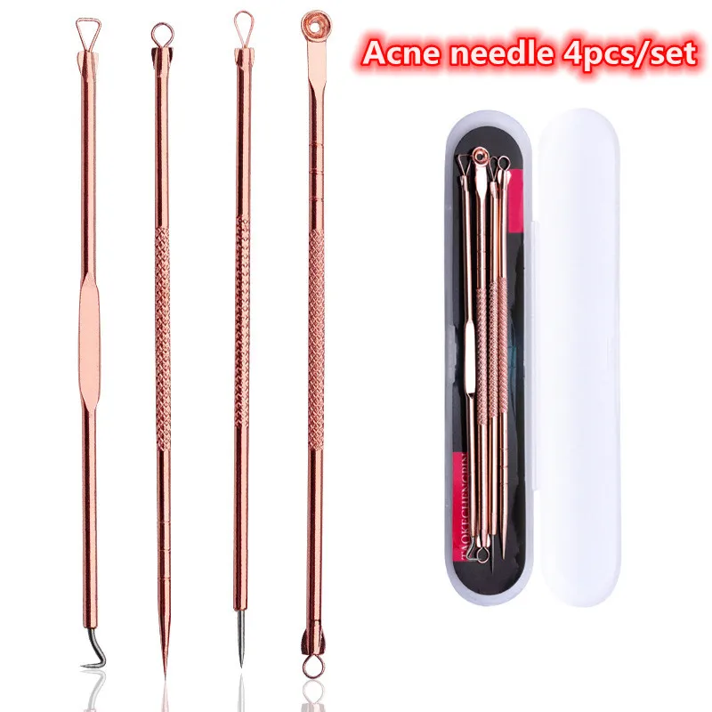4 Pcs Stainless Steel Blackhead Remover Tool Kit Face Massage Whitehead Pimple Spot Comedone Acne Extractor Face Massager