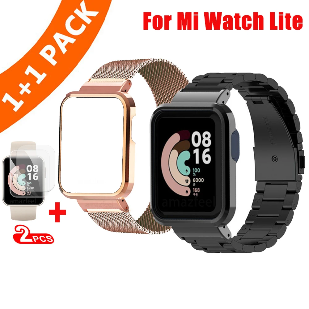 Stainless Steel Bracelet with Metal Case Protector For Xiaomi Mi Watch Lite Strap Wristband Frame Bumper For Mi watch Lite Film