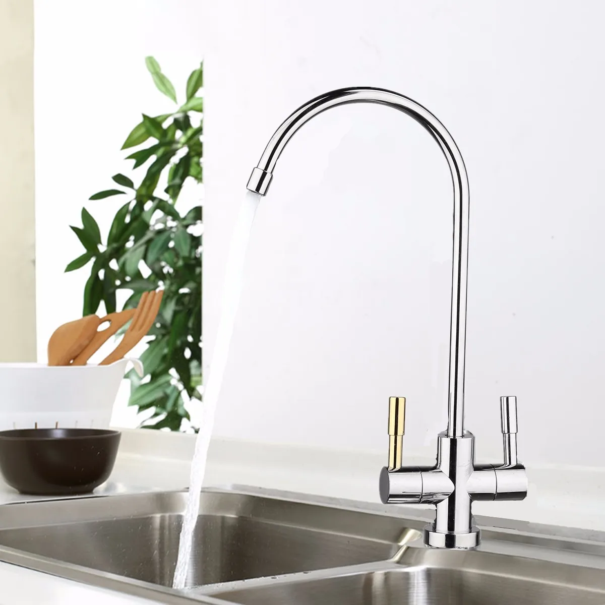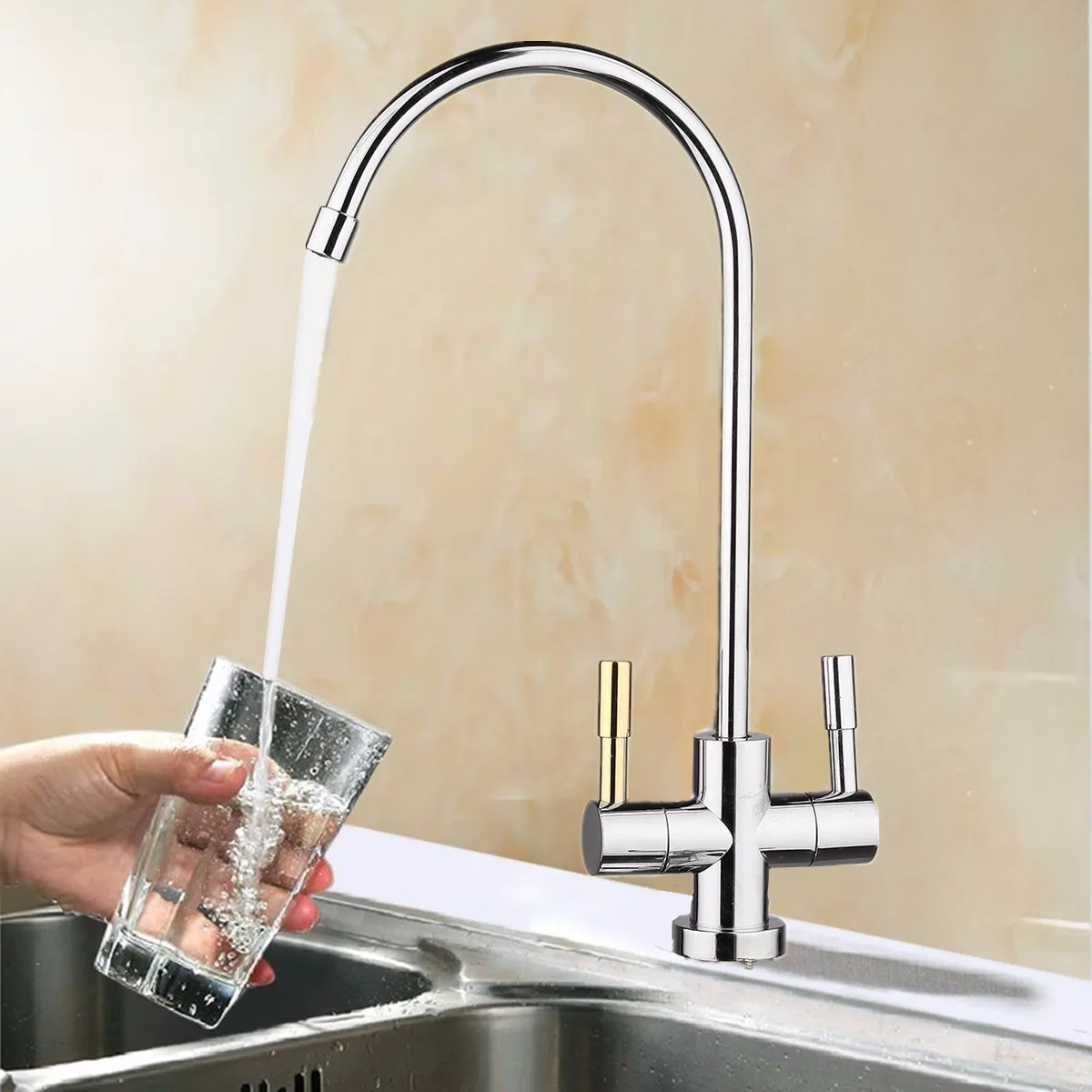 Stainless Steel 1/4'' Chrome Drinking RO Water Filter Faucet Finish Reverse Osmosis Sink Kitchen Double Holes Water Intake