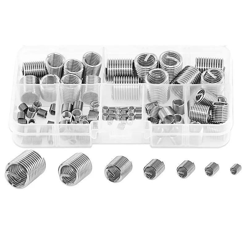 84 Pcs 304 Stainless Steel Metric Wire Thread Inserts Steel Sheath Type Screw Repair Sleeve Assortment Kit