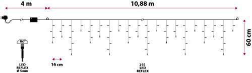 LUCI A CASCATA: Stalattite luminosa di grande effetto con una totalità di 255 luci Led distribuite sulle 68 calate. Luci di Natale che percorrono un cavo di 10,8 metri di larghezza e 60 centimetri massimi di altezza giacché le calate hanno diverse misure. La vostra fantasia potrà così spaziare dall'addobbo del balcone preferito, del portone, alla vetrina e non solo...