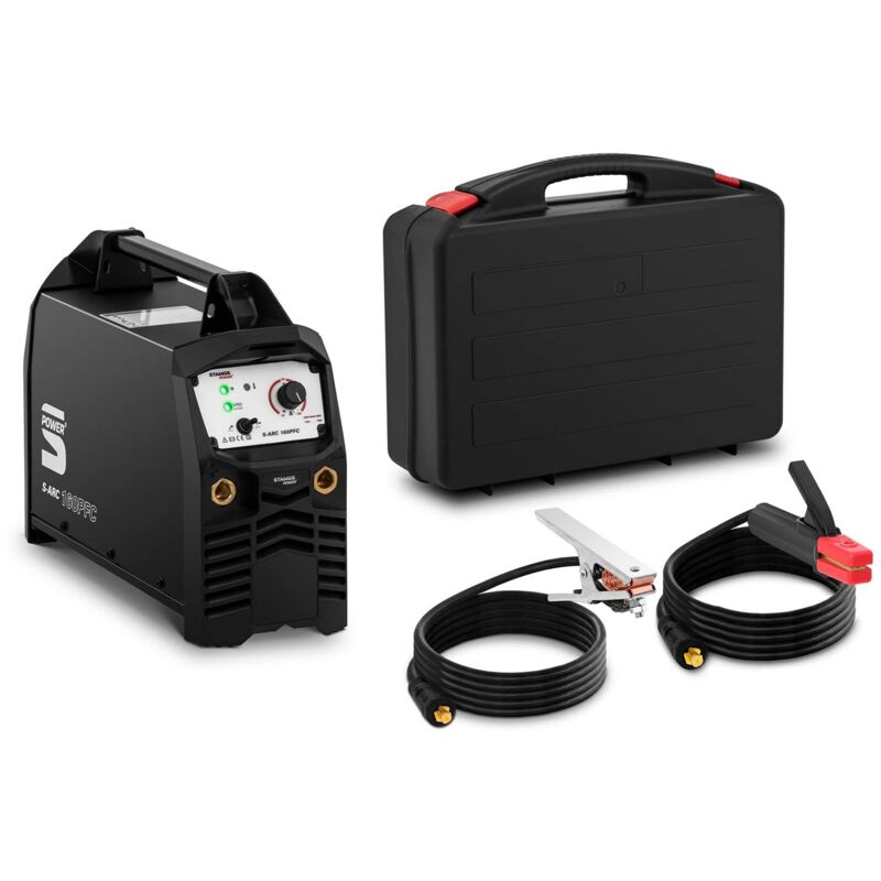 Saldatrice a elettrodo S-ARC 160PFC di Stamos Power² La saldatrice MMA è pensata per alimentazioni elettriche che possono anche differire dai 230 V e può essere usata anche per generatori di corrente. La saldatrice a elettrodi può compensare in modo affidabile anche fonti di energia instabili, è particolarmente flessibile ed è utilizzabile anche nei cantieri. L'aggiunta di una torcia per saldatura TIG Liftarc (non inclusa nella spedizione) offre funzionalità aggiuntive per utilizzare la saldatura TIG con il dispositivo. Per la saldatura a elettrodo hai a disposizione le funzioni Hot Start, Anti-Stick e Arc Force che ti garantiscono risultati di saldatura eccellenti con una corrente di saldatura di 10 - 160 A. Scegli l'affidabile tecnologia di saldatura di Stamos Power2! Dettagli tecnici Tensione di rete in entrata 230 V Potenza di corrente max. 160 A Potenza in ingresso max. 3,1 kVA (TIG), 5,0 kVA (MMA) Conduzione di ingresso nominale 3,6 kVA /5,0 kVA Tensione a vuoto 67 V Corrente in