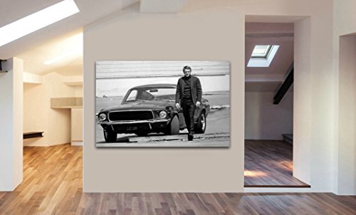 Stampa artistica da parete su tela, motivo: Steve McQUEEN Ford MMUSTANG