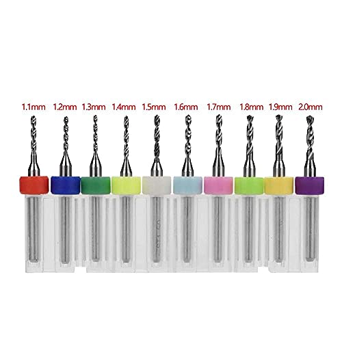 10 micro punte in carburo misto da 1,1, 1,2, 1,3, 1,4, 1,5, 1,6, 1,7, 1,8, 1,9, 2,0 mm