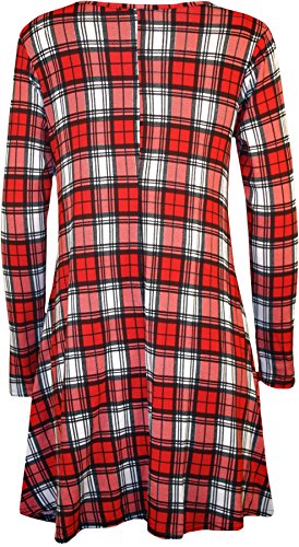 Stampa da Donna a Maniche Lunghe Scollatura a Costine Elasticizzato da Donna Corto Swing Dress - 8 - 14