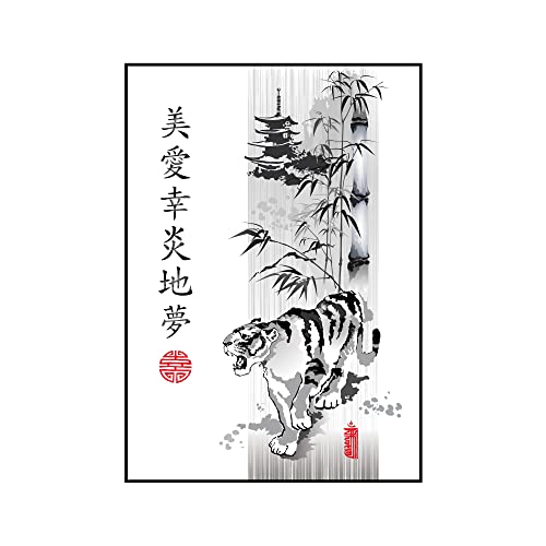 Stampa da parete decorazioni da muro tigre paesaggio giapponese acquerelli poster per arredo soggiorno camera da letto cucina 30x40 DIN A3 stampe d'arte senza cornice