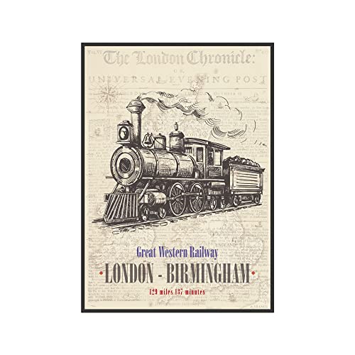 Stampa da parete giornale vintage treno a vapore locomotiva Londra poster Inghilterra quadri moderni decorazioni da parete per arredo 30x42 DIN A3 SENZA CORNICE