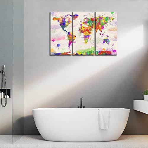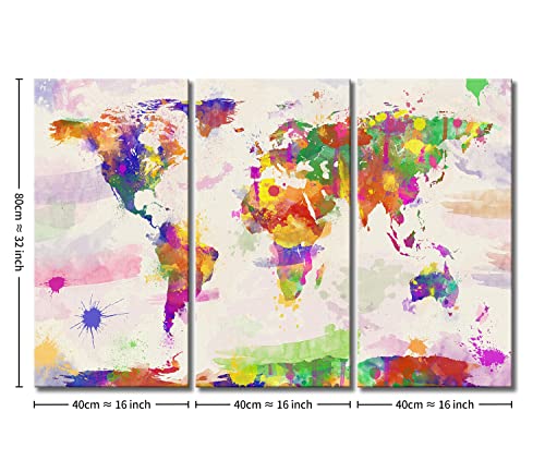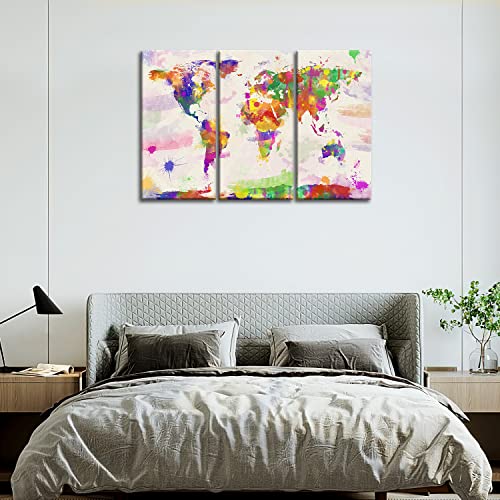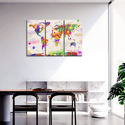 Stampa su tela, dipinti per la decorazione della casa, mappamondo in stile acquerello dipinto a mano, 3 pezzi. Pannelli incorniciati in stile moderno per la decorazione del soggiorno