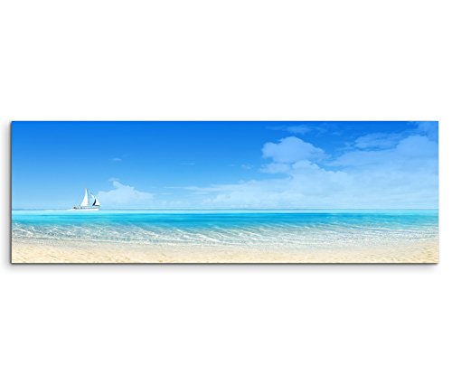 Stampa su tela, 150 x 50 cm, su telaio, soggetto: mare estivo con barca a vela
