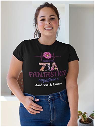 STAMPATEK Maglietta Zia Personalizzata Personalizzabile con Nome Nipoti T-Shirt Zia Nipotino Maglia Donna Divertente Idea Realo