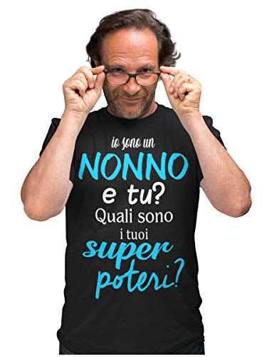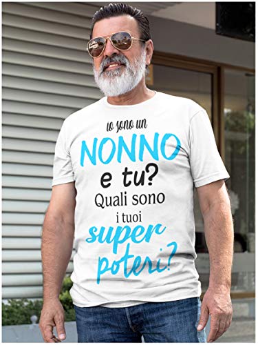 STAMPATEK Maglietta T-Shirt Nonno Idea Regalo per la Festa dei Nonni Maglia Divertente con Scritta Nonno Ha i Super Poteri