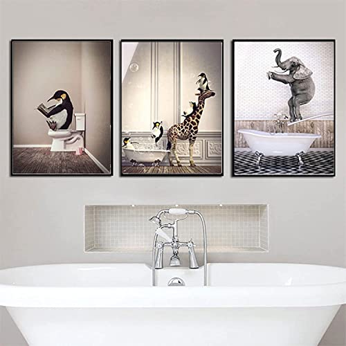 Stampe artistiche da parete con animale, in bianco e nero, con animali nella vasca da bagno, poster minimalista per la casa, 4 pezzi senza cornice (20 x 30 cm x 4 pezzi)