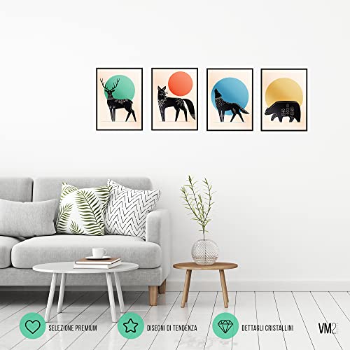 Set di stampe da parete etniche animali africa minimal decorazioni da muro poster etnici abbinati come arredo soggiorno camera da letto 4xA4 21x30cm senza cornice (NORD)