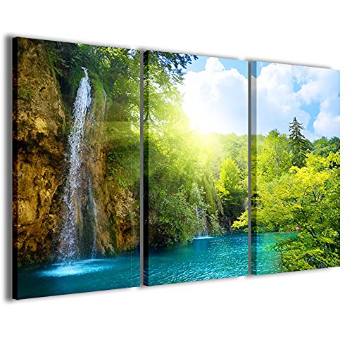 Stampe su Tela Quadro, Waterfalls I Cascate Tela Moderna in 3 Pannelli già intelaiati, Canvas, Pronto per Essere Appeso, 90x60cm