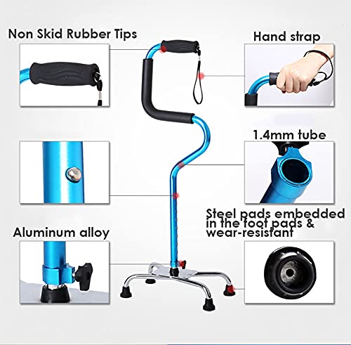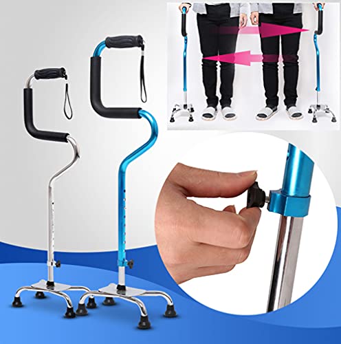 YXW Stampelle Ortopediche Regolabili, Bastone ergonomiche in Alluminio, stampelle quadripode, per Anziani, carico 120 kg, Argento/Blu (Dimensioni, 26×18×78-95,5 cm)