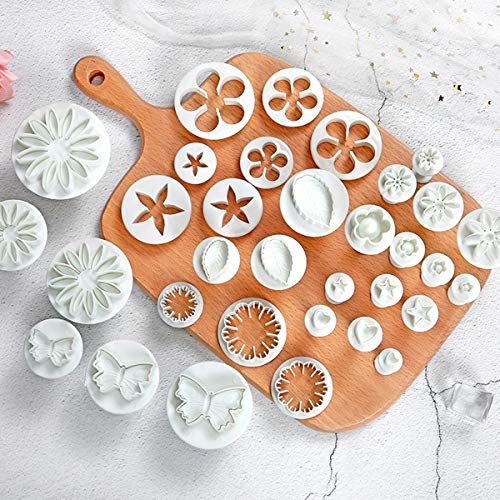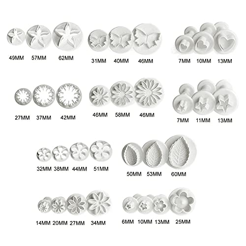Set di stampi per fiori, 33 pezzi, per decorazioni per torte, fondente, biscotti, zucchero, colore: bianco