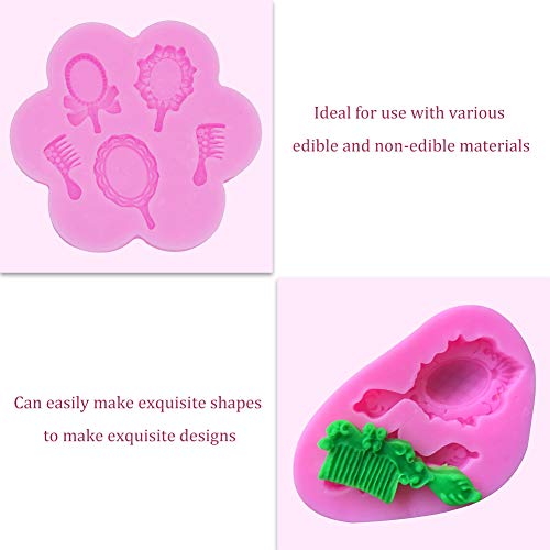 Stampi per fondente in silicone con cornice a specchio, 5 pezzi Stampo in silicone per specchio Strumenti per decorare torte Sugarcraft Stampo per caramelle al cioccolato per cupcake Topper Decorazio