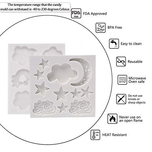Set di 3 stampi per fondente in silicone Moon Star Cloud, per decorazioni di torte al cioccolato, zucchero, caramelle