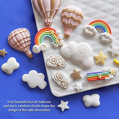 ❤ Stampi in silicone ideali per dettagli di alta qualità su torte e cupcake. Mongolfiera e stelle molto squisite, design a forma di nuvole arcobaleno, per decorare le vostre torte.
