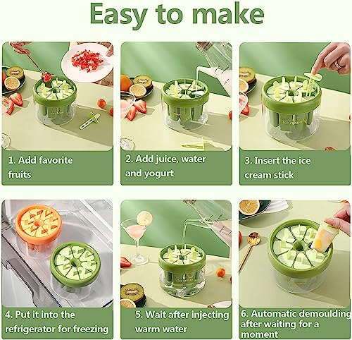 Design innovativo: i nostri stampi in silicone per popsicle con 8 fori e 8 bastoncini riutilizzabili. È possibile creare 8 diversi gusti contemporaneamente. Senza bordi taglienti, facile da tenere per i bambini. Fondo liscio: facile da rimuovere, facile da pulire, lavabile in lavastoviglie.