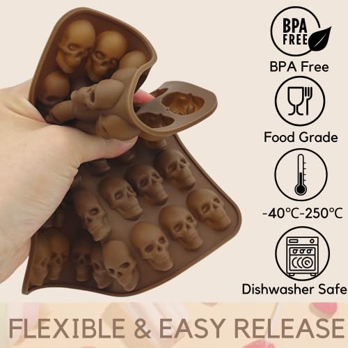 Stampi gommosi a forma di teschio in silicone, confezione da 2 40 stampi in silicone per Halloween con 1 contagocce per cioccolato, caramelle, gelatina, cubetti di ghiaccio