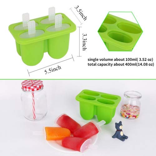 Ice pop stampi - Myoldsx silicone Popsicle stampi per ghiaccioli con bastoncini e drip-guards, easy-release, DIY congelati stampi, approvato dalla FDA, senza BPA, set di 4 - verde