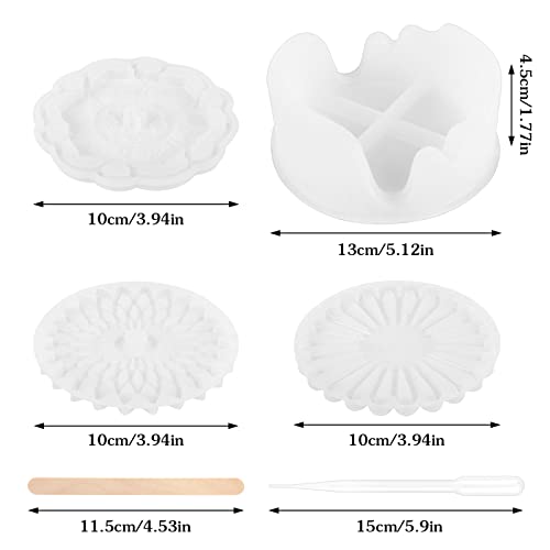 Stampi in Resina Coaster, Kit di Stampo in Resina per Sottobicchiere Ha 3 Sottobicchieri Stampo in Silicone e Casella di Archiviazione, Stampi in Resina Epossidica con Bastoncini in Legno/Contagocce