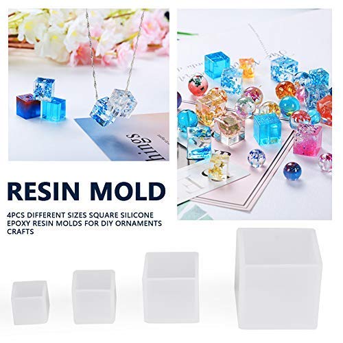 Stampi in resina 4 pezzi, diverse dimensioni Quadrato stampi in resina epossidica in silicone Stampi per fusione in cubo di resina per fermacarte di sapone Candela Ornamenti Mestieri