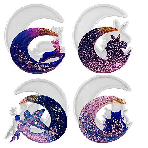 Set di stampi in resina: la confezione include 4 confezioni di stampi in resina siliconica, tra cui il gatto lunare, fulvo lunare, angelo lunare, unicorno luna per creare un mondo fiabesco.