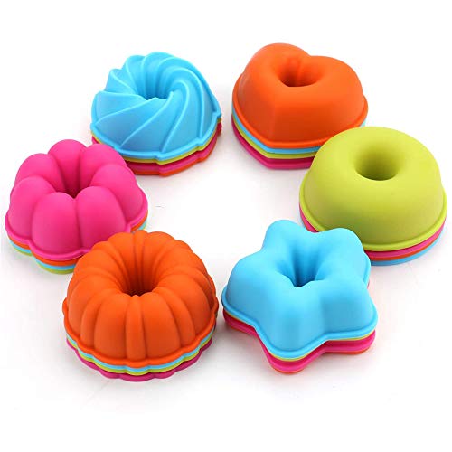 Stampi in Silicone per Dolci - YUESEN 24PCS Stampo per dolci al silicone fluted, Anti-aderente Tazze per dolci - Zucca, stella, fiore, cuore, forme di savarin Stampi per mini torte