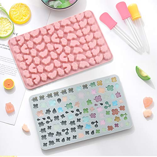 Set di stampi in silicone: include 1 stampo per animali, 1 stampo per frutta, 1 stampo per arcobaleno e nuvole, 1 stampo per foglie, 2 contagocce per fare caramelle, gomme, cioccolatini, zecche, caramelle, torte piccole, gelatine, cubetti di ghiaccio, pastelli a pastello. set di stampi in silicone per creare il tuo modello carino.