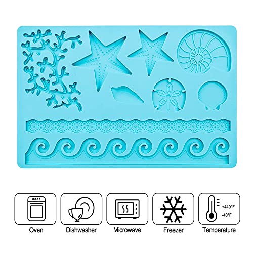 Stampi in Silicone Seashell Stampi in Silicone Fondente Animali Marini Stampi in Silicone a Forma di Conchiglia di Stella Marina per Decorare Torte di Compleanno, Cioccolato, Caramelle, Biscotti—Blu
