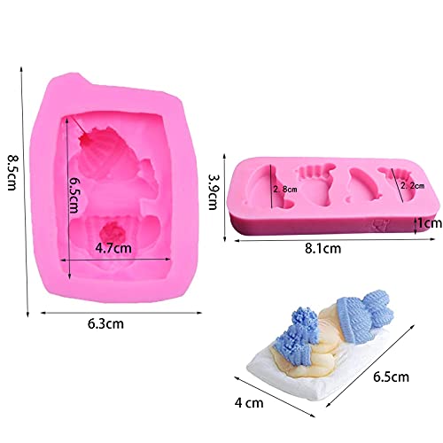 Stampo per Bambini Addormentato 3D Riutilizzabile Baby Shower Party Stampo Baby Fondente per Strumento di Cottura di Budino al Cioccolato Fai da Te Stampo in Silicone 3D a Forma di Impronta(2 Pezzi)