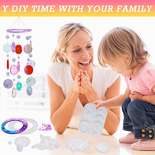 【ATTIVITÀ INTERESSANTE】 - Gli stampi in resina fatti a mano fai da te sono un'attività che può aumentare l'interazione tra le persone, aumentare la comunicazione nel processo di realizzazione di artigianato e trascorrere un momento felice, adatto a genitori, famiglie e studenti. Nel processo di produzione, è possibile aggiungere alla colla lamina d'oro, glitter, fiori secchi, polvere di mica, ecc. per rendere i campanelli eolici più originali.
