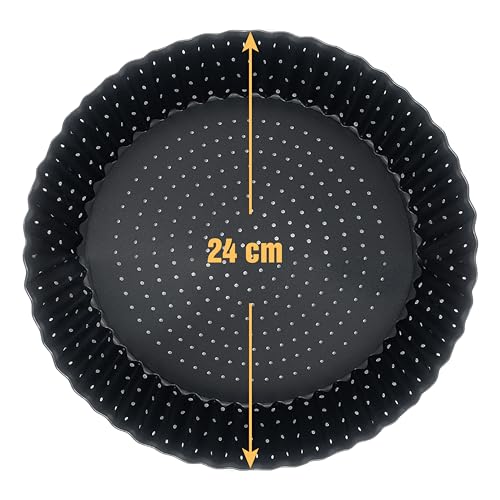 MISURE: Diametro 24 cm. Altezza: 5,5 cm. Stampo Alto per crostate, quiche o torte di design tradizionale. Sorprendete la vostra famiglia o con gli amici con una propria creazione squisita.