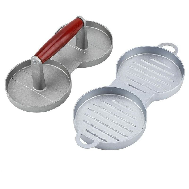 Realizzato in lega di alluminio premium, è resistente e non facile da arrugginire per un uso a lungo termine doppia pressione per rendere i tuoi hamburger rotondi perfetti in modo semplice e veloce, il che ti fa risparmiare molto tempo Design ergonomico, il manico in legno è comodo da impugnare e utilizzare. La sua superficie antiaderente lo rende super facile da pulire e veloce da rilasciare per Patty