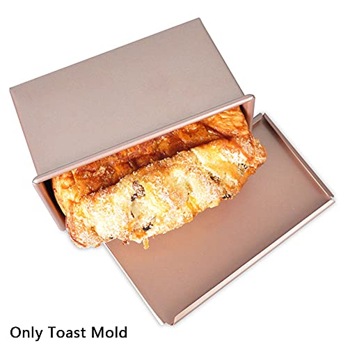 Stampo per Pane Tostato Antiaderente,Stampi a Cassetta per Pane con Coperchio,Rettangolare Teglie Forno con Coperchio Scorrevole(Oro Rosa)